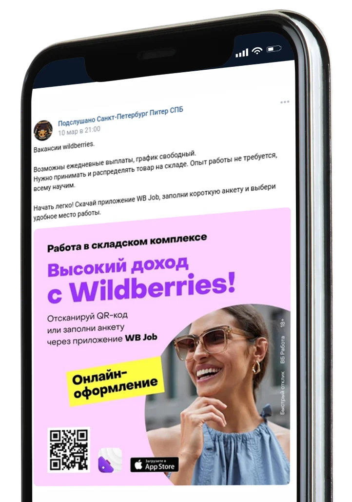 Мы разработали креативы (визуальные и текстовые материалы) для размещения в рекламных объявлениях, акцентируя внимание на привлекательных условиях работы и преимуществах компании. Провели мониторинг ключевых метрик, скорректировали объявления для достижения высокой эффективности.